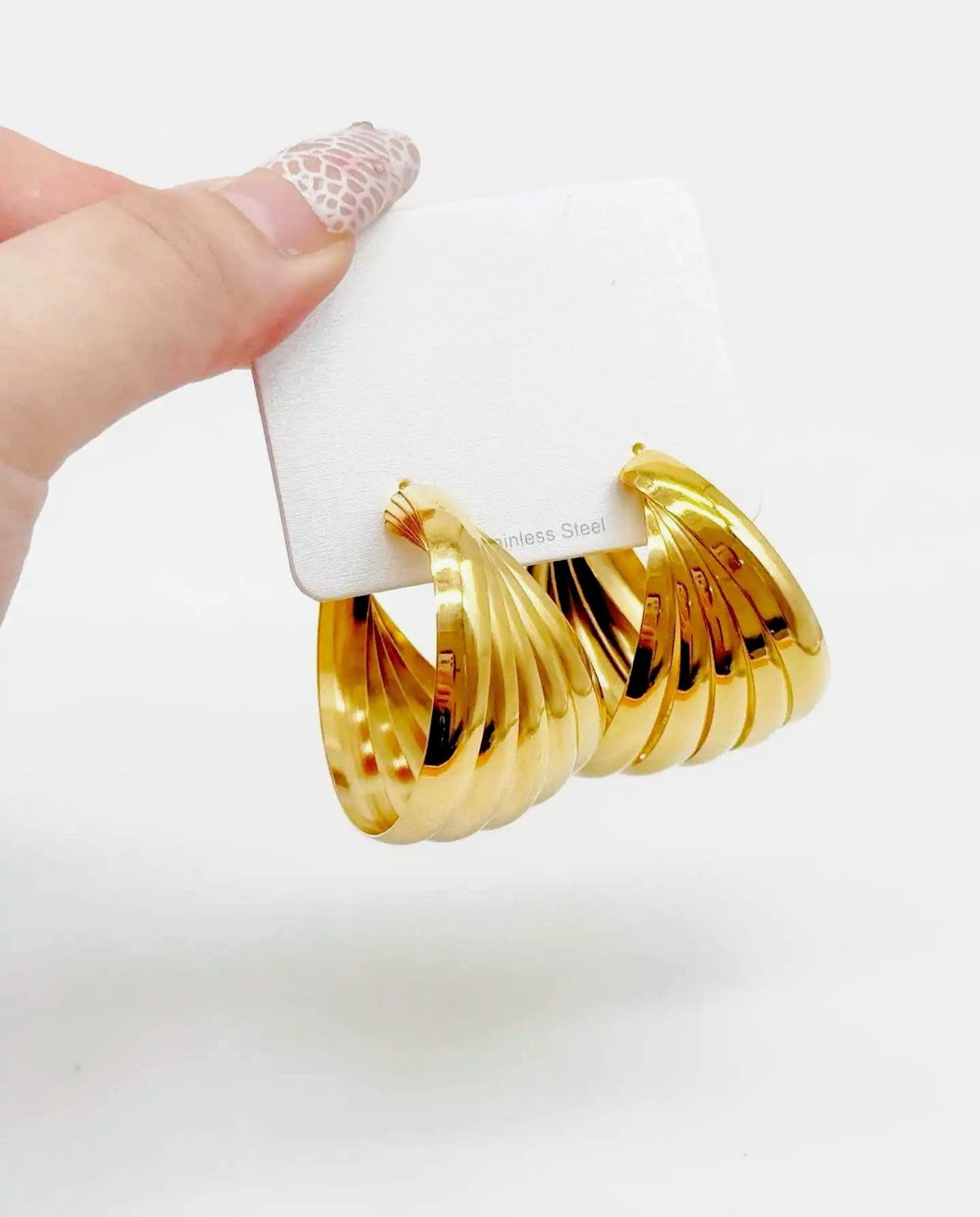 Intemporelles boucles d'oreilles rondes striées en acier inoxydable.